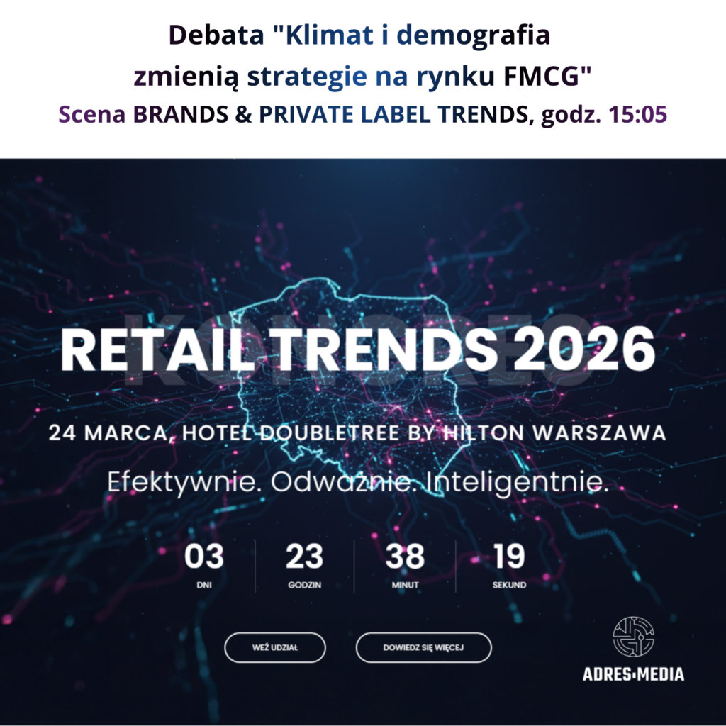 Adres:Media wzmacnia swoją obecność w kluczowych dyskusjach branżowych. Już 24 marca br. podczas Retail Trends 2026 w Warszawie, Agnieszka Becler, strateg i facylitatorka w Adres:Media weźmie udział w eksperckiej debacie pt. „Klimat i demografia zmienią strategie na rynku FMCG”.